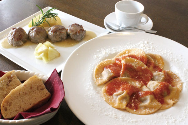 リコッタチーズとホウレン草を詰めた《トルテッリ》セージバターソース